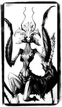 Ja és igen, a rovarszellemeket bizony meg kell idézni. Ami azt jelenti, hogy végső soron egyetlen ember felelős az egészért. Valamikor, valahol, valaki meghallotta e szellemek hívását és válaszolt rá. Minden rovarsámán azt hiszi, hogy uralma alatt tarthatja a szellemeit és saját céljaira használhatja fel őket, de minden egyes alkalommal kiderül, hogy ez téves elképzelés. A sámán királynőket vagy nőstényeket idéz meg, hogy saját hatalmát növelje, de hamarosan rá kell döbbennie, hogy nem tudja irányítani a teljesen kifejlett szellemet. A rovarszellem hamarosan úgy dönt, hogy a sámán csak arra jó, hogy egyre gyakrabban és egyre több rovarszellemet idézzen meg. Egy idő után a sámánra már nincs is szükség. Nem hallottam egyetlen olyan esetről sem, hogy egy rovarsámán egy teljesen kifejlett, jelentősebb méretű bolyt vagy fészket irányított volna.