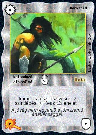 | (AK 30) Neves kalandozók: Alex Vampirsson, Annak, Aquan, Aritma, Arnilla, Asylum, Azbesztagyú Arktisz, Bean-sidhe, Belladonna, Betonfal, Borax király, Caramella, Connor Wartause, Csákányos Blendor, Csala-csíny Csilla, Csillagbajnok, Dálámár, Darkseid, Daronel, Diána, Don Caloni, Dort Amessix, Dögvész, Éjmágus, El Dongo, Eliana, Ervdő, Estariol, Ezeréletű, Fantalas, Flavius, Fullánk, Gandor, Grath Morphus, Gwendolen, Haarkon, Harq al-Ada, Helvir, Higany Hugó, Hófehérke, Hurleon, Ifjabb Lord Kovács, Igazságtevő, Igor, Ithril, Jerikó, Kaporszakáll, Kis Vagabund, Kloin Drungas, Kopernik, Korgó Szikra, Kőfejű Beldor, Kri Wu She, Kyra, Lady Olívia, Lavinia Lobara, Linkor Csumovszkij, Loidin Haptitus, Lord Korell, Lord Kovács József, Lusta Gurbag, Maigner Lopotomos, Malvina Lobara, Mandhal di Mehr, Mantrion, Martian, Mennydörgő Kénsav, Monukonstrumatik Abarrun, Niagren, Nord, Ommó, Ortevor, Orzag, Őrült Trax, Patkány Rénó, Pelegrin, Pooyan, Qriklix, Ragyogó Ron, Redyque, Rius, Sardullah Sharpa, Setét Patkány, Sighter, Sihaya, Síkok Vándora, Silistra, Siol von Uman báró, Sir Magic Master, Sir Tobias, Sistergő Pumpa, Smack, Sörtehajú Ninsai, Sutor Kragoru, Syndel, Sysania Selune, Szellőléptű Elvatar, Szertelenke, T. Vlagyimir, Takonypóc, Thor, a sárkányölő, Tomboló Ovgar, Tsalez Lau'pez, Uwalla, Vangorf gróf, Vérhörgő Mamulut, Wulf Gretta, Yasmina, Ygrodon, Zan-csemete, Zoodroo Tint, Zoola, Zu'lit, Zurgblug. | | (AK1) Amíg Darkseid nem lépett szintet, és így nem tud lehelni, rakhatsz rá Savleheletet. Ha ezután szintet lép, a Savlehelet nem esik le róla, mindkét leheletet használhatja egyszerre. | | (AK5) Darkseid azon képességébe, hogy immúnis a szintszívásra, nem tartozik bele a Trónfosztás és a purifikálás, csak a Szintszívás varázslatra és a szintszívó lények speciális képességére érvényes ez az immunitás. | | (AK7) Összefogás: Ha egy összefogott Tűzfőnix - Darkseid párost leköpi egy Tintacsiga, akkor az összefogott lények gazdája dönti el, hogy melyik lénynek csökken eggyel a sebzése. Amíg össze vannak fogva, addig az össz sebzésük is eggyel csökken. Ha szétválnak, és a Tűzfőnix kapta a köpetet a sebzése -1 lesz. Ez nem azt jelenti, hogy gyógyít az ellenfelén, hanem ha valahogyan megnöveled a sebzését (pl. Óriáserő), akkor az -1-ről indul. |