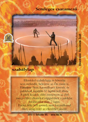 (AK130) A Semleges csatamező pontosan úgy működik a Bűvös erdő szempontjából, mint az Ősi rúna. Vagyis három Bűvös erdő esetén, az ellenfelem csak eggyel kevesebb lapot húz. Másik Semleges csatamező esetén pedig mindkét játékos kivehet hét lapot az ellenfele paklijából.