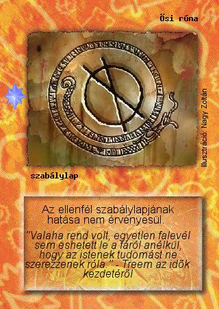 Kiadás: Ezüsthajnal, Alappakli, 10. kiadás, Védnök 2025 Gyakoriság: ritka Lapszín (isten): Nincs Típus: szabálylap Szöveg: Az ellenfél szabálylapjának hatása nem érvényesül. Szinesítő szöveg: "Valaha rend volt, egyetlen falevél sem eshetett le a fáról anélkül, hogy az istenek tudomást ne szerezzenek róla." - Treem az idők kezdetéről Illusztráció: Nagy Zoltán