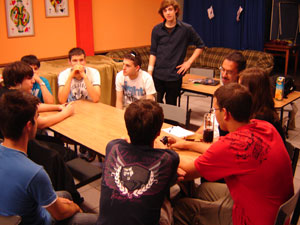 Pillanatkép az első asztalokról. Jobb oldalt felül Panyik Zoltán, közepen Simon Dániel, bal oldalt Kahn Evarth.
