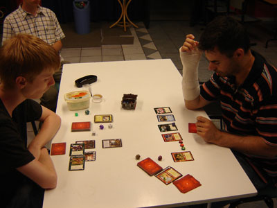 45 játékos tért vissza a második napra, amikor Sokszínűség formátumot tartottunk. Itt is sokféle koncepció alakult ki, természetesen többnyire good stuff kontroll pakli szerepelt, volt sok Zarknod bilincse varázslatokkal illetve lényekkel és Terrgath kontroll is, de láthattunk Arochos paklit, 5 követős víziót, Edraliant, Bűvös erdő+Kragoru fimiliárisát, Semleges csatamezőt, kontrollt Ősi bölcsességgel, áldozós paklit Terrgath-tal, épületes paklit Terrgath-tal illetve Építő rakshallionnal, Halhatatlanok nagymesterét, Lassan járj tárgypaklit Átkozott követővel, Szűk esztendőket, Lassan járj + Antimágikus rakshalliont, valamint hálócsapdás kontrollt is.