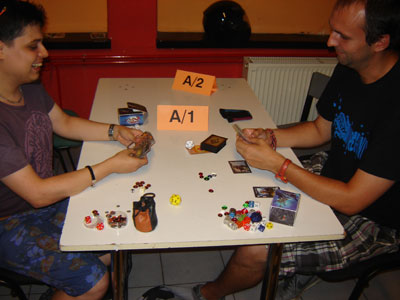 Az első összecsapáson Attila egy Hatalom őrületével 5 laptól és 4 VP-től fosztotta meg Gergőt, aki nemsokára ugyanezzel 6 lap, 6 VP arányban vágott vissza. A Morgan könyve azonban elfogyasztotta pakliját, így Attila felőrölte.