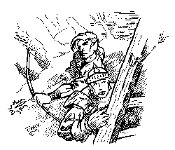 Surranó zajt hallok magam mögött. Csak nem kerültek mögém? Mire megfordulok, karcsú árnyék vetődik rám. Csak egy hímzett bőrmellényt látok, mire mind a ketten a földre huppanunk. Elf. Alkarvédős kezével barátságosan megveregeti a vállam, és míves hosszú íját kezdi összeszerelni.