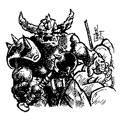 Apró kést rántok elő. A lovas zordan elmosolyodik. Szinte nevetségesnek tűnik a kicsiny penge a hatalmas termete ellen. De arcáról lelohad a mosoly, ádáz vigyoromat látva. Gyanakodva lép közelebb, övéről egy buzogányt vesz le. Közelebb lépek és az oldalamba vágom a kést. Átvágva ezzel a vértem belső oldalába hímzett rúnát.