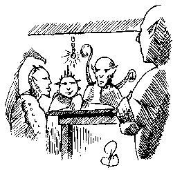 Bánta már, hogy nem figyelt jobban, amikor körülötte a szövetségekről esett szó. Hitte, hogy a galetki fajért küzd ő is, de nem bízott benne, hogy harcában segítséget kaphat kortársaitól, akik halvány árnyékai csupán az Ősöknek, kik maguk is elbuktak egykoron... Most úgy érezte, talán elmulasztott valamit, ami talán tudás, de talán több is annál. S hogy mulasztását pótolja, igyekezett nyitott füllel járni, s meghallgatni mindenkit, aki érdemesnek találta rá, hogy szóljon hozzá. A Hírmondókról is kérdezősködött, és estére már tudni vélte, mit tartanak róluk a szint lakói: léha társaság, akik erejük fejlesztése helyett haszontalan szórakozással múlatják az időt, az Ősök törvényében szentesített vetélkedés helyett pedig gyáván támogatják egymást.