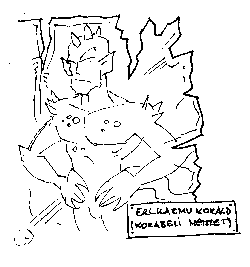 - Bölcs szavak, uram királyom, hisz bölcs vagy magad is! - lépett élő nyájas mosollyal Rahdin. A többiek hátrahőköltek, ahogy a fényben előtűnt püffedt, gennyes fekélyektől eltorzult arca, amin groteszk vigyor játszott. - Ne is törődj velük, hisz nem képesek felfogni, mit is jelent az uralkodás mennyei művészete! Kicsinyes szabályaikon túllépve azt tettem mindig, amit jónak láttam, s akaratom alá hajtottam a nyakas népeket. Én vagyok az örök hatalmasság, a változás sokszínűsége! Az én ősi hitem erejével nem ér fel egyetlen nemes sem! - hűvös pillantást vettet az uralkodóra. - Csak maga Erwar király - esetleg.